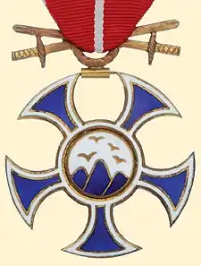 The establishment of the Order of the Falcon in 1919 resulted from a proposal in September 1918 by the Minister of War Milan Rastislav Štefánik (hence the unofficial name)[2] [3] and was intended to recognise achievements that contributed to the liberation of Czechoslovakia. Membership of the order was primarily conferred upon members of the Czechoslovak Legions who served in Siberia during the Russian Civil War.[1] The order was short-lived as all Czechoslovak orders were abolished in 1919, soon after the Czechoslovak Republic declared independence; they were 'regarded as undemocratic'.[1] One of the most famous officers to be appointed a Knight of the Order of the Falcon was Major General Jan Syrový.[4][5] During the Russian Civil War, Syrový commanded all anti-Bolshevik forces in Siberia from October 1918 to January 1919[4][6] and, in September 1938 as the Czechoslovak Prime Minister, he was forced to accept the terms of the Munich Agreement.[7]