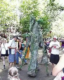 The fair is a family event with face painting, puppet shows, and music for children. Toplessness is permitted while full nudity is not allowed during public hours in public areas.[14] No alcohol is allowed, and smoking is limited to designated areas. All glass bottles are banned from the fairgrounds in an attempt to protect the safety of shoeless fairgoers, and to preserve the integrity of the land. The fair has its own water and communications systems, recycling service, emergency medical team, traffic control, and security team. Since 1997 there has been a strong effort to make it a drug-free event.