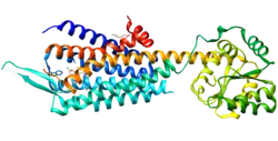 The structure of the receptor has been solved to 2.5 Å resolution as a fusion protein bound to suvorexant using lipid-mediated crystallization.[6]
