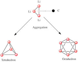 Like other species consisting of polar subunits, organolithium species aggregate.[7][14] Formation of aggregates is influenced by electrostatic interactions, the coordination between lithium and surrounding solvent molecules or polar additives, and steric effects.[7]