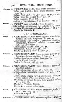 1. 1 2 Linnaeus 1753, Vol. 1. Hexandria Monogynia pp. 306–308.