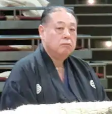 He fell from makuuchi for the last time in May 1984, and announced his retirement in January 1988 at the age of forty after falling into the non-salaried makushita division.[2] He had competed in 157 tournaments, and had fought a total of 1891 career bouts, the latter of which is an all-time record.[3] His total of 964 career wins was also a record at the time, although it was surpassed by Chiyonofuji less than two years later, in September 1989.