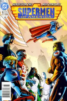 The Supermen of America is the name of two fictional superhero teams published by DC Comics. The original group first appeared in a special written by Stuart Immonen published in 1999,[1] and a later mini-series written by Fabian Nicieza, which was published in 2000. The second group debuted in Superman #714 in 2011.