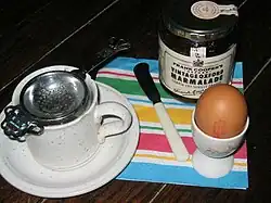 Brekker, breakker or brekkers (for breakfast) is a coinage from the 1880s still in occasional use. In 1996, Jessica Mitford (1917–1996) in one of her final letters to her sister, Deborah, Duchess of Devonshire, referred to "proper boiled eggs for breakker".[46] Shampers (champagne) occurs frequently, often spelt champers: "They like champers up north".[47]