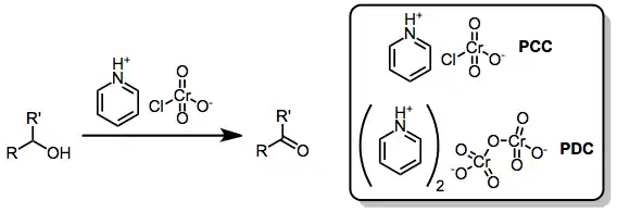 Oxidation with chromium(VI) complexes involves the conversion of alcohols to carbonyl compounds or more highly oxidized products through the action of molecular chromium(VI) oxides and salts.[1] The principal reagents are Collins reagent, PDC, and PCC. These reagents represent improvements over inorganic chromium(VI) reagents such as Jones reagent.