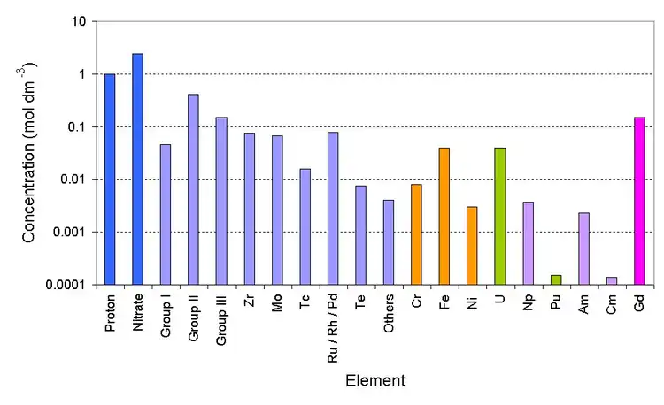 - ↑ Paiva, A. P.; Malik, P. (2004). "Recent advances on the chemistry of solvent extraction applied to the reprocessing of spent nuclear fuels and radioactive wastes". Journal of Radioanalytical and Nuclear Chemistry. 261 (2): 485–496. doi:10.1023/B:JRNC.0000034890.23325.b5. S2CID 94173845.