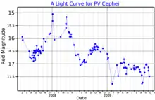 A red band light curve for PV Cephei, adapted from Lorenzetti et al. (2011)[9]