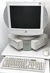 Also in 1994, Packard Bell hired industrial design firm Frog Design, known for their work with Apple and NeXT, to redesign Packard Bell's personal computer line.[11] They designed the cases of company's next generation of desktops with accented trim panels featuring wavy contours; these panels can be detached and replaced with ones of a different color.[11][18] With these redesigned cases, Packard Bell was the first company to use a color-coding system for the external connectors on the rear of the computer, corresponding with the color of the shroud of the plugs on the devices that Packard Bell provided with their computers (e.g., purple for keyboards, teal for mice). This innovation was intended to make installation of peripherals easier and predated the PC System Design Guide standard for color-coding connectors, introduced in 1999.[19]