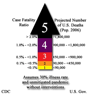 - 1 2 3 4 5 6 Roos, Robert; Lisa Schnirring (February 1, 2007). "HHS ties pandemic mitigation advice to severity". CIDRAP News. Retrieved August 11, 2007.