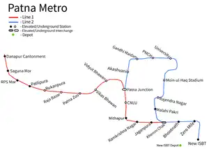 - 1 2 "30% of metro rail priority corridor works completed in Patna". The Times of India. 18 January 2023.