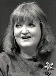 Other West End theatre credits included Semi-Detached with Laurence Olivier and directed by Tony Richardson (with whom she was to work often, appearing in his 1963 film Tom Jones), Shut Your Eyes and Think of England, with Donald Sinden, The Seagull and Ben Travers's The Bed Before Yesterday, both directed by Lindsay Anderson and When We Are Married for Ronald Eyre.[7][5] She also starred in Cameron Mackintosh's revival of Oliver! in the mid-1990s, as well as playing Jack's mother in the original London cast of Sondheim's Into the Woods.[6] Her final appearance was as Mrs Pearce in the National Theatre's production of My Fair Lady which also starred Jonathan Pryce.[8]