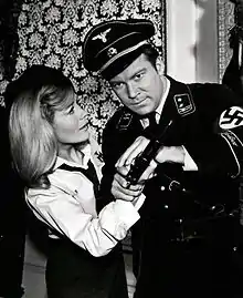 ![]() Kirk in a Nazi uniform with Daras, an Ekosian resistance member | |