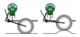 This questioning led to the eventual development of a hydro-pneumatic suspension system, which combined an easily compressible gas in an enclosed chamber with the non-compressible, force-multiplication properties of hydraulic machinery. In such a system increasing loads produce higher gas pressures, so the suspension becomes more rigid. Magès ultimately concluded that hydraulic fluid under pressure, delivered by an engine driven accessory –- a hydraulic pump – was the best way to achieve the desired result.[8]