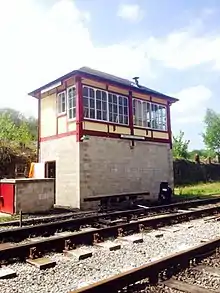• Matlock Riverside: an original British Rail cabin, formerly located at Luffenham junction. The restored cabin is mounted on a non prototypical stone-block base with an internal staircase to protect the box from vandalism, required due to its isolated location. The 19-lever frame was recovered from Glendon North Junction near Kettering. Mechanical interlocking allows the signals exiting and entering the loop via the Darley Dale end to be cleared in opposing directions when the cabin is switched out via the King locking lever.