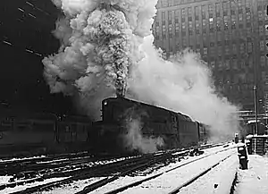 A T1 prototype leaving Chicago's Union Station in February 1943 with the Manhattan Limited to New York
