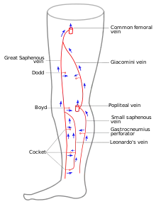 - ↑ Cavezzi A, Labropoulos N, Partsch H, et al. (March 2006). "Duplex ultrasound investigation of the veins in chronic venous disease of the lower limbs--UIP consensus document. Part II. Anatomy". European Journal of Vascular and Endovascular Surgery. 31 (3): 288–99. doi:10.1016/j.ejvs.2005.07.020. PMID 16230038.