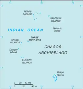 Île Yeye, located at the northeastern corner of the atoll, is the island of the Chagos Archipelago that is closest to the Maldives.[4]