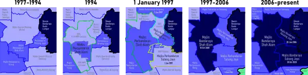 Following a boundary realignment exercise in January 1997, parts of Petaling Jaya including Subang Jaya, USJ, Putra Heights, and Bandar Sunway were ceded to the newly formed Subang Jaya Municipal Council or MPSJ at the time. In exchange, the MPPJ annexed Bandar Utama, Sungai Buloh, Bukit Lanjan, and Kota Damansara from the Petaling District Council (Majlis Daerah Petaling, MDP), which disestablished itself after the cession.