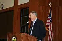 On September 20, 2007, Stark reaffirmed that he was an atheist by making a public announcement in front of the Humanist Chaplaincy at Harvard, the Harvard Law School Heathen Society, and various other atheist, agnostic, secular, humanist, and nonreligious groups.[44] The American Humanist Association named him 2008 Humanist of the Year,[45] and he served on the AHA Advisory Board. On February 9, 2011, Stark introduced a bill to Congress designating February 12, 2011, as Darwin Day; this was a collaboration between Stark and the American Humanist Association. The resolution states, "Charles Darwin is a worthy symbol of scientific advancement ... and around which to build a global celebration of science and humanity."[46]