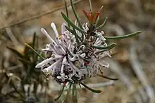 Petrophile linearis, commonly known as pixie mops,[2] is a species of flowering plant in the family Proteaceae and is endemic to southwestern Western Australia. It is a shrub with narrow egg-shaped leaves, the narrower end towards the base, and oval to spherical heads of hairy, greyish-pink or mauve to almost white flowers.