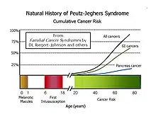 - ↑ Boardman, Lisa A.; Thibodeau, Stephen N.; Schaid, Daniel J.; Lindor, Noralane M.; McDonnell, Shannon K.; Burgart, Lawrence J.; Ahlquist, David A.; Podratz, Karl C.; Pittelkow, Mark; Hartmann, Lynn C. (1998). "Increased Risk for Cancer in Patients with the Peutz-Jeghers Syndrome". Annals of Internal Medicine. 128 (11): 896–9. doi:10.7326/0003-4819-128-11-199806010-00004. PMID 9634427. S2CID 11373591.