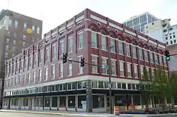 Entrances appear on facades facing both Main and Sixth Streets. Above the third-floor windows on the Main Street facade there are round-arch elements with small round windows above, while the Sixth Street facade has corbelled brick elements in the same area. Built in 1899 by the Lasker Brothers to a design by Charles L. Thompson, it was for many years home to the Pfeifer Brothers store, one of the city's leading department stores.[2]