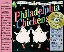 Philadelphia Chickens is a book/music CD combination by Sandra Boynton and Michael Ford, published in 2002. The first half of the book contains lyrics and illustrations, while the second half contains musical notation for each song.[1] It was reviewed favorably by The Philadelphia Inquirer[2] and was also reviewed by Publishers Weekly.[1]