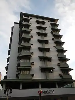 The Philippine Bank of Communications (PSE: PBC), more commonly known as PBCOM (Hokkien Chinese: 菲律賓交通銀行; Pe̍h-ōe-jī: Hui-li̍p-pin Kau-thong Gûn-hâng; & Mandarin simplified Chinese: 菲律宾交通银行; traditional Chinese: 菲律賓交通銀行; pinyin: Fēilǜbīn Jiāotōng Yínháng), is a universal bank[1] in the Philippines. It was founded in 1939. The bank's headquarters, PBCom Tower, located in Makati, is the second-tallest building in the Philippines.