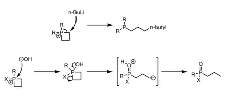 The main observation of ring opening is as a byproduct of other intended reactions, such as phosphetanium oxidation[25][26] and α-carbon functionalization.[27]