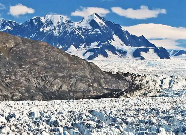Pilot Peak is an 8,670-foot (2,643 m) elevation glaciated summit located 27 mi (43 km) northwest of Valdez in the Chugach Mountains of the U.S. state of Alaska. Set on land managed by Chugach National Forest, this remote peak is situated 6.5 mi (10 km) east of Mount Einstein, and 5.7 mi (9 km) southwest of Tazlina Tower.[2] The mountain was so named in 1955 by Lawrence E. Nielsen "because it is a very distinctive landmark that helped guide us back to camp in our explorations during 1955."[3] Nielsen was leader of the Chugach Mountains Expedition which was sponsored by the Arctic Institute of North America. This name was officially adopted by the U.S. Board on Geographic Names in 1965.[2]