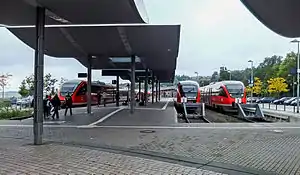 Pirmasens Hauptbahnhof is a terminal station in the town of Pirmasens, in the German state of Rhineland-Palatinate, about one kilometre from the city centre. It was opened on 25 November 1875 and is the terminus of the Biebermühl Railway (Biebermühlbahn), which was also opened in 1875 as a branch line from the Southern Palatinate Railway (Südpfalzbahn). The Pirmasens Nord station lies on the edge of Thaleischweiler-Fröschen, so Pirmasens Hauptbahnhof is actually the only station in the city of Pirmasens.