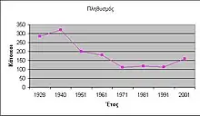 Urbanization, influenced Pitsiota as it did in all Greek villages in the 1960s according to the upper data. The present population of the village consists almost wholly of aged people, above 70 years old. The Winters Pitsiota is emptying, and its only inhabitants are about 8-10 aged couples. However, in the summer the population can reach 200 of all ages. Official data of 2001 showed also that average in Pitsiota stays at "37 women and 38 men".