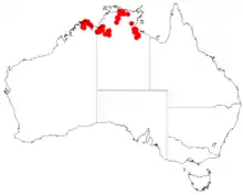 This pityrodia grows in sandy soils on sandstone ridges and rocks in the Northern Kimberley, Victoria Bonaparte, Arnhem Coast, Arnhem Plateau, Darwin Coastal, Gulf Coastal, Gulf Fall and Uplands, Ord Victoria Plain and Pine Creek bioregions of the Northern Territory and Western Australia.[4][1]