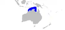 The plain maskray inhabits the continental shelf of northern Australia from the Wellesley Islands in Queensland to the Bonaparte Archipelago in Western Australia, including the Gulf of Carpentaria and the Timor and Arafura Seas.[2] There are unsubstantiated reports that its range extends to southern Papua New Guinea. It is the least common of the several maskray species native to the region.[1] This species is a bottom-dweller that prefers habitats with fine sediment. It has been recorded from between 12 and 62 m (39 and 203 ft) deep, and tends to be found farther away from shore than other maskrays in its range.[1]