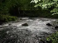 The Pliva river flows from West to East, is 26.8 kilometers long, and has an average discharge artificially set for a biological minimum of 3.0 m3 near town of Jajce at the waterfall site. Total watershed area of the Pliva is 1,326 km2.[1] Its source is some 8 kilometers upstream of the town of Šipovo near Pljeva at the foot of the mountain of Smiljevac-Jastrebnjak, where the Pliva springs out from two very strong karstic springwells at 483 meters above sea level. The main tributary of the Pliva is the Janj, that flows into the Pliva from the right, in the center of the town of Šipovo. At the confluence, both the Janj and the Pliva are approximately the same size, and both rivers have the same amount of water.