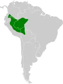 It is found in Bolivia, Brazil, Colombia, Ecuador, and Peru. Its natural habitat is subtropical or tropical swamps.