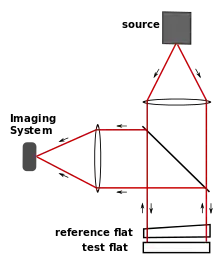 Figure 2: Fizeau interferometer requires a reference optics. It is very important that the reference optics(flat) be near perfect because it heavily influence the measured surface form of a test object.