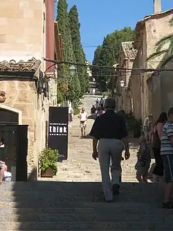 Most houses were built in the 17th and 18th centuries and many streets are very narrow and compact, a legacy from the medieval era. The central square, called Plaça Major, has numerous outdoor cafés and is dominated by a large 13th-century church Esglèsia de Nostra Senyora dels Àngels (Our Lady of the Angels) which was built by the Knights Templar.