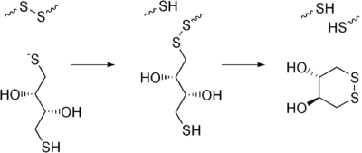 In addition to SDS, proteins may optionally be briefly heated to near boiling in the presence of a reducing agent, such as dithiothreitol (DTT) or 2-mercaptoethanol (beta-mercaptoethanol/BME), which further denatures the proteins by reducing disulfide linkages, thus overcoming some forms of tertiary protein folding, and breaking up quaternary protein structure (oligomeric subunits). This is known as reducing SDS-PAGE.