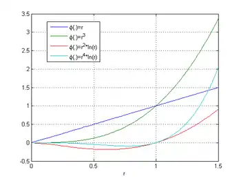 Other values of the exponent are not useful (such as ), because a solution of the interpolation problem might not exist. To avoid problems at (since ), the polyharmonic RBFs with the natural logarithm might be implemented as:
