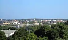 According to the United States Census Bureau, the city has a total area of 16.8 square miles (43.6 km2), of which 15.7 square miles (40.6 km2) are land and 1.2 square miles (3.0 km2), or 6.92%, are water.[14] Portsmouth is drained by Berrys Brook, Sagamore Creek and the Piscataqua River, which is the boundary between New Hampshire and Maine. The highest point in the city is 110 feet (34 m) above sea level, within Pease International Airport.