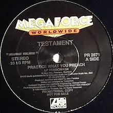 "Practice What You Preach" is a song by American thrash metal band Testament, taken from their 1989 album Practice What You Preach. It was released as a promotional single to support the album.[1] Due to being one of the band's most famous and popular songs, and for being one of the most frequently played songs at live concerts, "Practice What You Preach" can be considered to be Testament's signature song.
