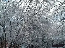 The storm devastated the 1,100-unit Woodland Meadows Apartments, one of the largest apartment complexes in the United States. With the power knocked out to much of Columbus, Ohio, including Woodland Meadows, the boiler system that heated the complex's buildings shut down. Pipes burst, and basement apartments flooded.[2] In April 2007, the Columbus City Council voted to tear down Woodland Meadows' 122 buildings, which once housed more than 2,000 government-subsidized tenants.[3] In 2015, the former owner of Woodland Meadows, Jorge Newbery, wrote Burn Zones: Playing Life's Bad Hands, to tell his side of the Woodland Meadows story.[4]