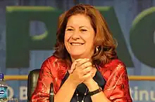 Brazil was the first Portuguese-speaking country to have a woman elected to the position of head of state (although Carmen Pereira served as interim president of Guinea-Bissau between May 14 and 16, 1984).[29][30][31] The cultured norm of the Portuguese language accepts both spellings – presidente and presidenta – as correct and acceptable.[32][33] As early as 1889, Cândido de Figueiredo's Novo Dicionário da Língua Portuguesa used the term "presidenta" to mean a woman who presides, and other dictionaries also followed suit; for example, according to the Dicionário Houaiss da Língua Portuguesa, "presidenta" is the feminine form of president, although it is less common.[34][35] The Dicionário Aurélio, on the other hand, states that the word can be used in the masculine and feminine, referring to "presidenta" as "wife of the president" or "woman who presides". The Dicionário Michaelis and the Dicionário Brasileiro Globo also give the same meaning as the Aurélio.[36]