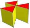 For example, {4}×{4}, a 4-4 duoprism is a lower symmetry form of a tesseract, as is {4,3}×{ }, a cubic prism. {4}×{4}×{ } (4-4 duoprism prism), {4,3}×{4} (cube-4 duoprism) and {4,3,3}×{ } (tesseractic prism) are lower symmetry forms of a 5-cube.