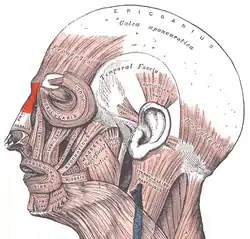 ![]() Muscles of the head, face, and neck. (Procerus visible at upper left, at top of nose.) | |