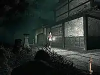 Project Zero 2: Wii Edition is a survival horror in which the player controls Mio Amakura as she searches for her twin sister Mayu in the haunted Minakami Village.[1] The game is a remake of Fatal Frame II: Crimson Butterfly, released in 2003 for PlayStation 2 and the following year for Xbox with additional content.[1][2][3] The storyline revolves around Mio and Mayu being drawn into the aftermath of a failed ritual where one twin must sacrifice another to restrain a dark power called the Hellish Abyss.[4] The game has six endings, four of them carried over from the original game and its Xbox port, gained either on different difficulties, watching certain in-game events, or completing battle scenes within a given time limit.[5]
