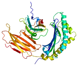 Prolactin-inducible protein also known as gross cystic disease fluid protein 15 (GCDFP-15), extra-parotid glycoprotein (EP-GP), gp17 seminal actin-binding protein (SABP) or BRST2 is a protein that in humans is encoded by the PIP gene.[5][6][7] It is upregulated by prolactin and androgens and downregulated by estrogen.