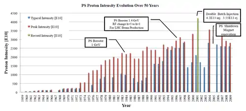 7. 1 2 3 4 5 Gilardoni, S.; Manglunki, D., eds. (2011). "The origins and the evolution of the CERN Proton Synchrotron". Fifty Years of the CERN Proton Synchrotron. Geneva: CERN. pp. 1–33. Retrieved 16 August 2017.