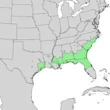 Natural range of Prunus caroliniana